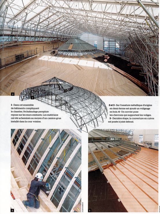 Nevertheless, before the actual work could begin, an astonishing scaffolding had to be put in place: a technical achievement in itself, since it comprised a vast umbrella resting on the walls of the building. With a very low load-bearing capacity and very few attachment points, the load bearing capacity of this temporary structure had indeed to be calculated precisely, to avoid weakening the existing structure.