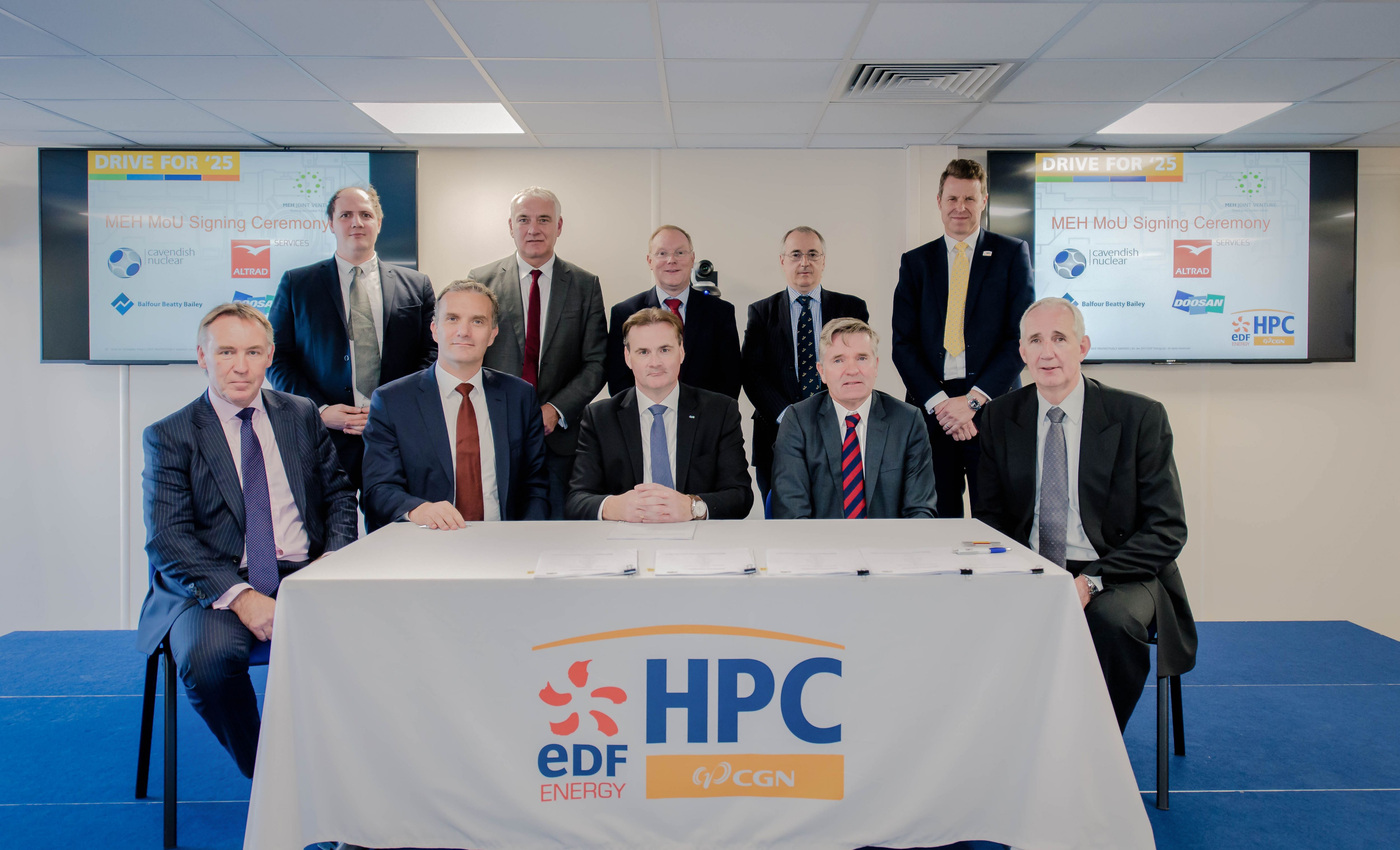 Le projet vise également à préparer la phase MEH (mécanique, électrique et ‘HVAC’ – signifiant chauffage, ventilation et climatisation). Le jeudi 27 septembre, quatre grands contracteurs britanniques ont signé « l’alliance MEH » pour travailler ensemble sur l’installation complexe de câblage et de tuyauterie dans les 2 500 pièces de la centrale. Cette approche innovante signifie notamment que les quatre acteurs impliqués, Altrad, Balfour Beatty Bailey, Cavendish Nuclear et Doosan Babcock, vont mettre en commun leur expertise pour travailler en tant qu'entité unique. Cette alliance vise à créer de nouvelles capacités industrielles et des emplois grâce, entre autres, à la production et la fabrication de piping (tuyauteries et canalisations spécialisées) en Grande-Bretagne.