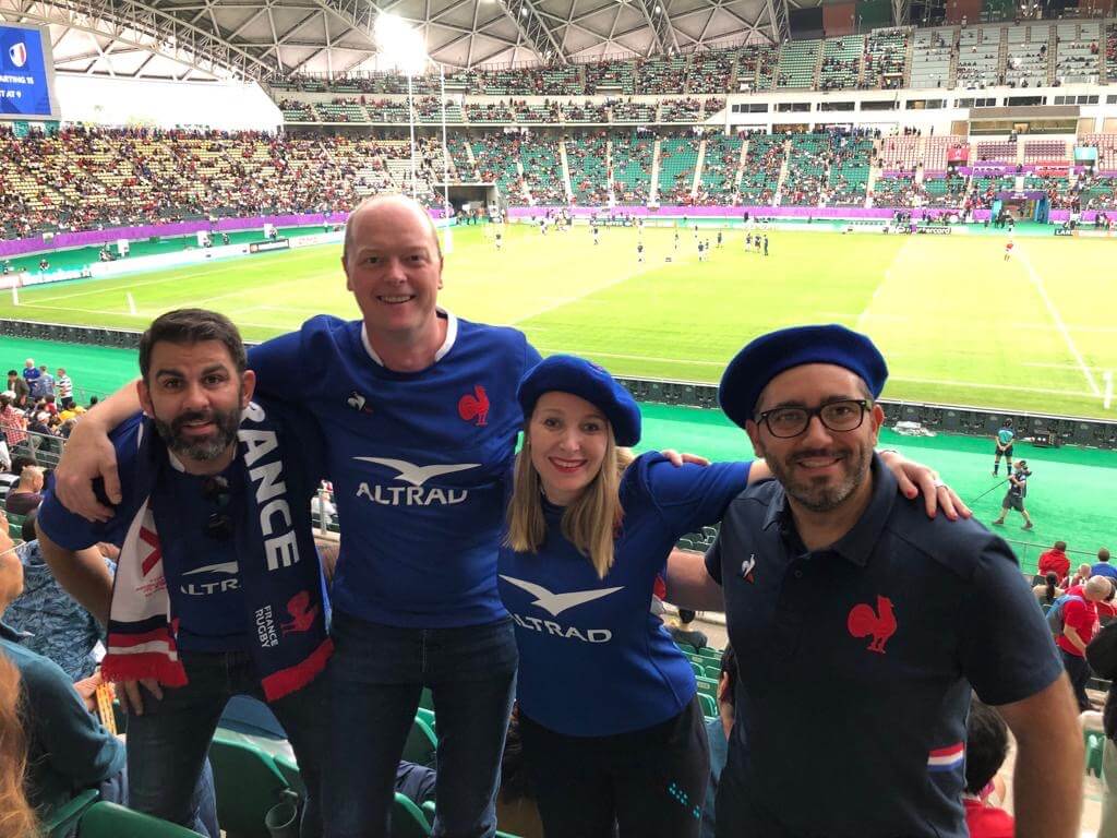 En tant que sponsor majeur du XV de France, nous nous sommes rendus à la coupe du monde pour supporter notre équipe. Cette année, la poule dont la France faisait partie réunissait l’Angleterre, l’Argentine, les Etats-Unis et les Tonga. Seuls les deux meilleurs pouvaient se qualifier pour les quarts de finale, un combat qui promettait d’être rude.