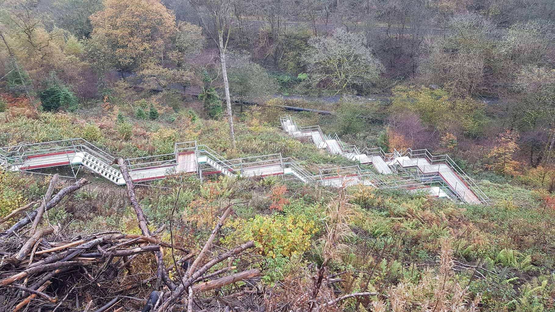 Generation Cardiff savait qu’au vu de l’ampleur du projet, il faudrait un échafaudage rapide à mettre en œuvre et parfaitement adaptable, à la forme d’un escalier, et qui pourrait de surcroît suivre la pente de la vallée de 50 mètres de profondeur et de 70 mètres de longueur !