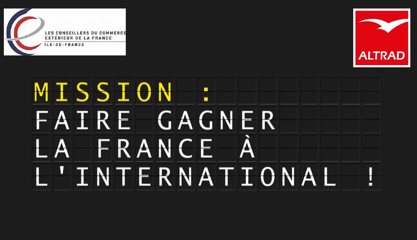 Les 4 et 5 octobre 2018 à la Maison de la Mutualité (Paris, France), à l’occasion des 120 ans d’action au profit de la diplomatie économique française, le groupe Altrad a souhaité devenir sponsor de l’événement « 5ème Mondial des Conseillers du Commerce Extérieur de la France ». Ce 5ème mondial des CCE (www.cce120ans.fr) a notamment réuni plus de 1.000 Conseillers (et non-Conseillers), en débats pléniers, autour du thème : « autre monde, nouvelle France ».