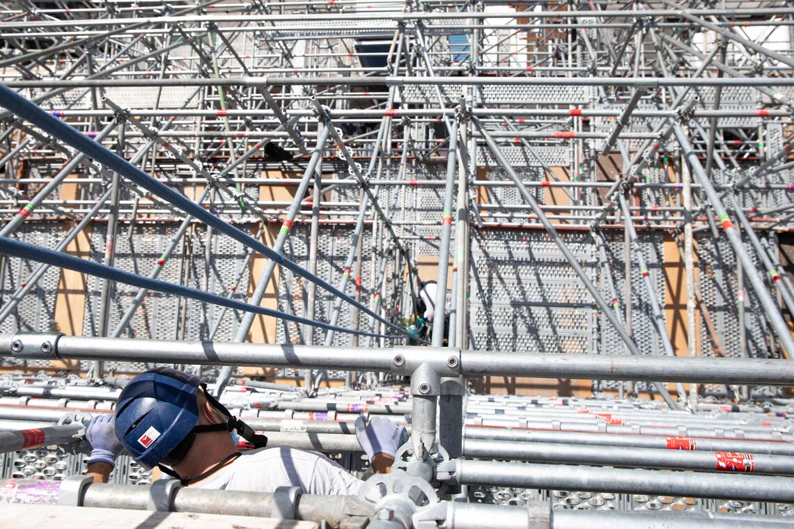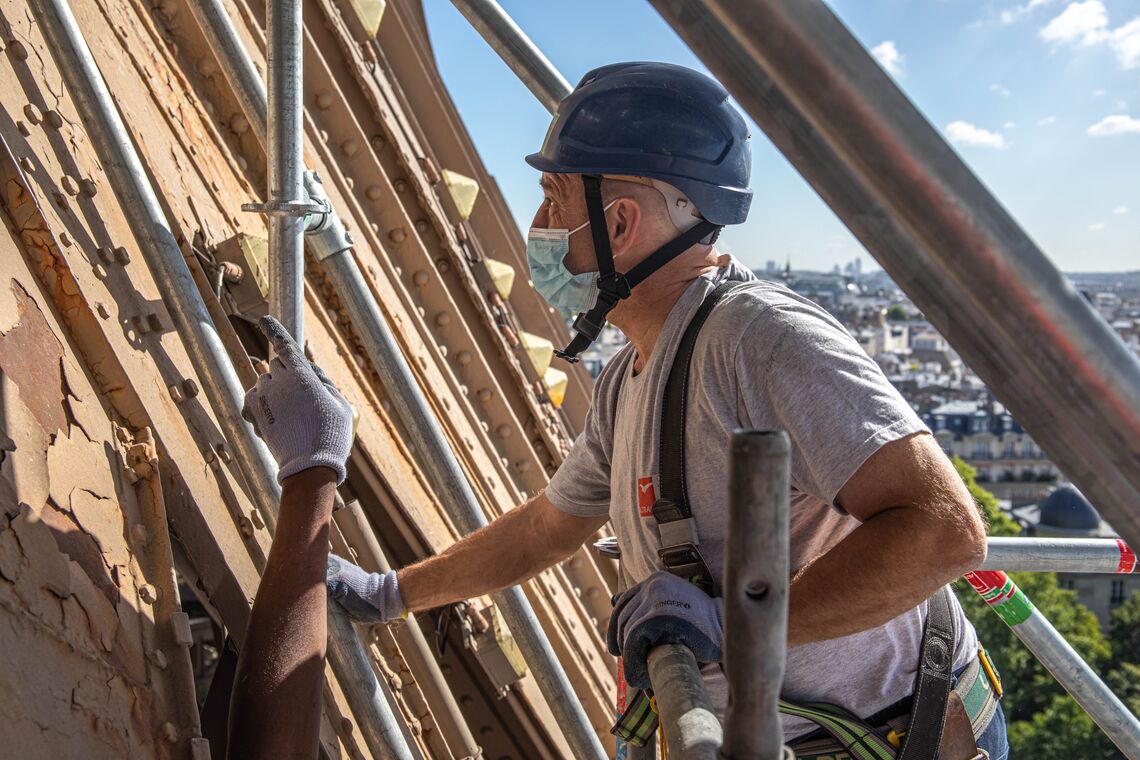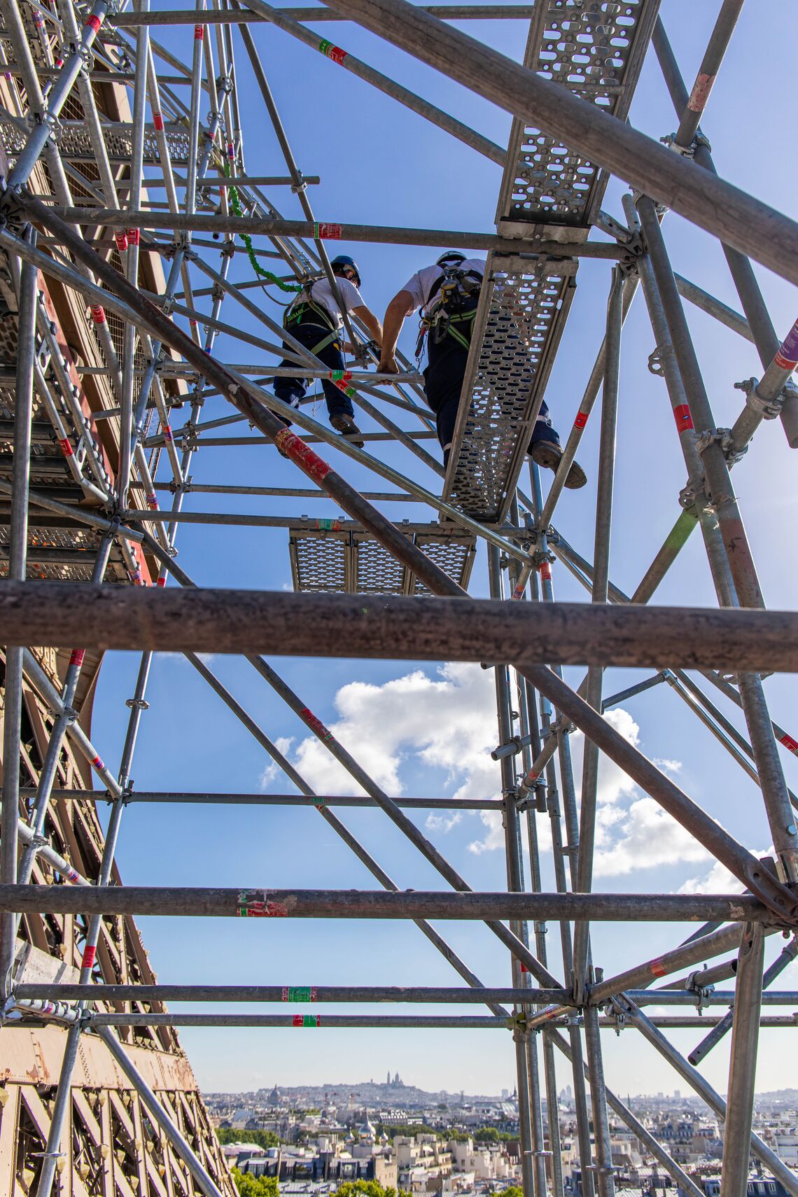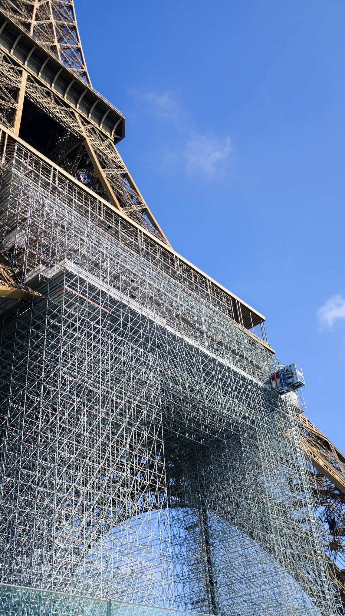 Un échafaudage remarqué sur le parvis de la tour Eiffel dans le cadre de la 20ème campagne peinture du monument