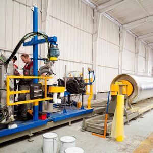 - Le système utilise un espace de travail modulaire qui peut être mobilisé dans le monde entier pour produire des tuyaux pré-isolés rapidement, efficacement et de manière fiable