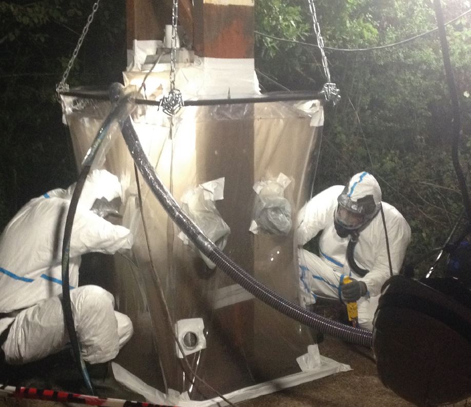 Nos équipes sont donc spécialement formées pour évoluer dans cet environnement à la fois hostile et sensible. Nous savons éliminer l’amiante - friable et non friable - et nous sommes un leader reconnu dans ce domaine, en particulier en ce qui concerne les opérations de décapage. De plus, au cours des phases de maintenance ou lors d’un démantèlement, nous éliminons non seulement l'amiante, mais aussi les revêtements pollués ainsi que des structures contenant toutes sortes d’autres contaminants.