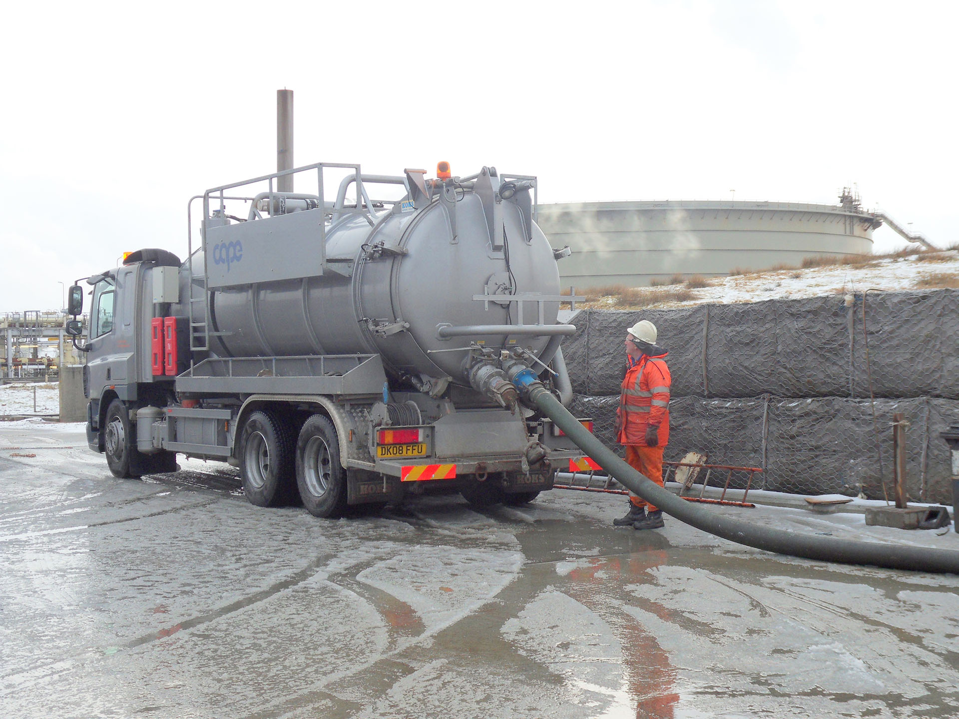 - Nettoyage offline des cuves : le système Sludgevac conçu par nos soins permet le dégazage rapide des cuves et l'élimination de tous les déchets solides et liquides ; il exige moins de préparation que le nettoyage par l'homme et peut transférer jusqu'à 10 tonnes de matière à l'heure (ce qui augmente le volume de travail possible pendant un arrêt et réduit considérablement les temps d'immobilisation).